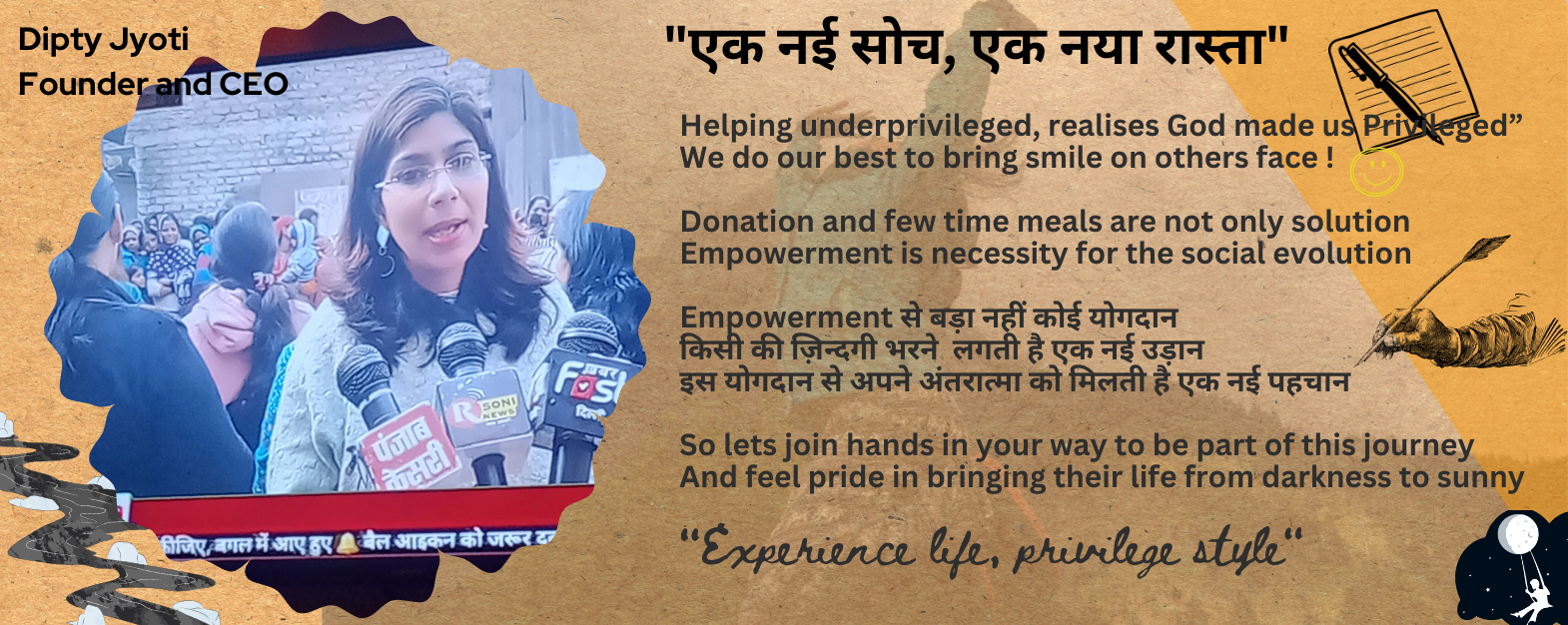 Her work got its wings for natural or social victims/survivors like acid attack survivor, rape victims, PwD, third genders etc. The journey begin and spreading it wings.